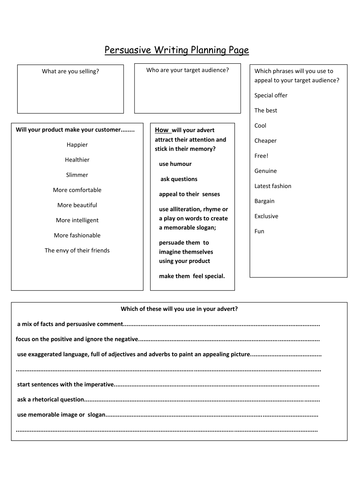 Writing An Advert Planning Page Teaching Resources